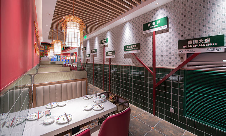 品深餐飲全案策劃設計團隊通過實地走訪廣州西關、荔灣、佛山禪城、祖廟等茶樓密布的廣佛地區,捕捉到了一些經典的元素,如鑊耳山墻、青磚石墻、廣式花窗、店招門牌、路牌指引等。這些元素經過歲月的洗禮,經過文化的沉淀,歷久彌新,非常具有廣州西關特色。